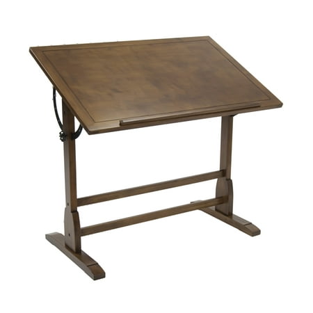 <li> Overall Dimension: 42" W X 30" D X 34.5" -46" H. Main Work Surface: 42" W x 30" D. Adjustable Angle Table Top from Flat to 90 Degrees.</li> <li> Antique Design and Finish.</li> <li> Built-in Pencil Groove with 24" Pencil Ledge. Solid Hard Wood Frame for Stability.</li> <li> Net Weight: 33 Lbs.</li>