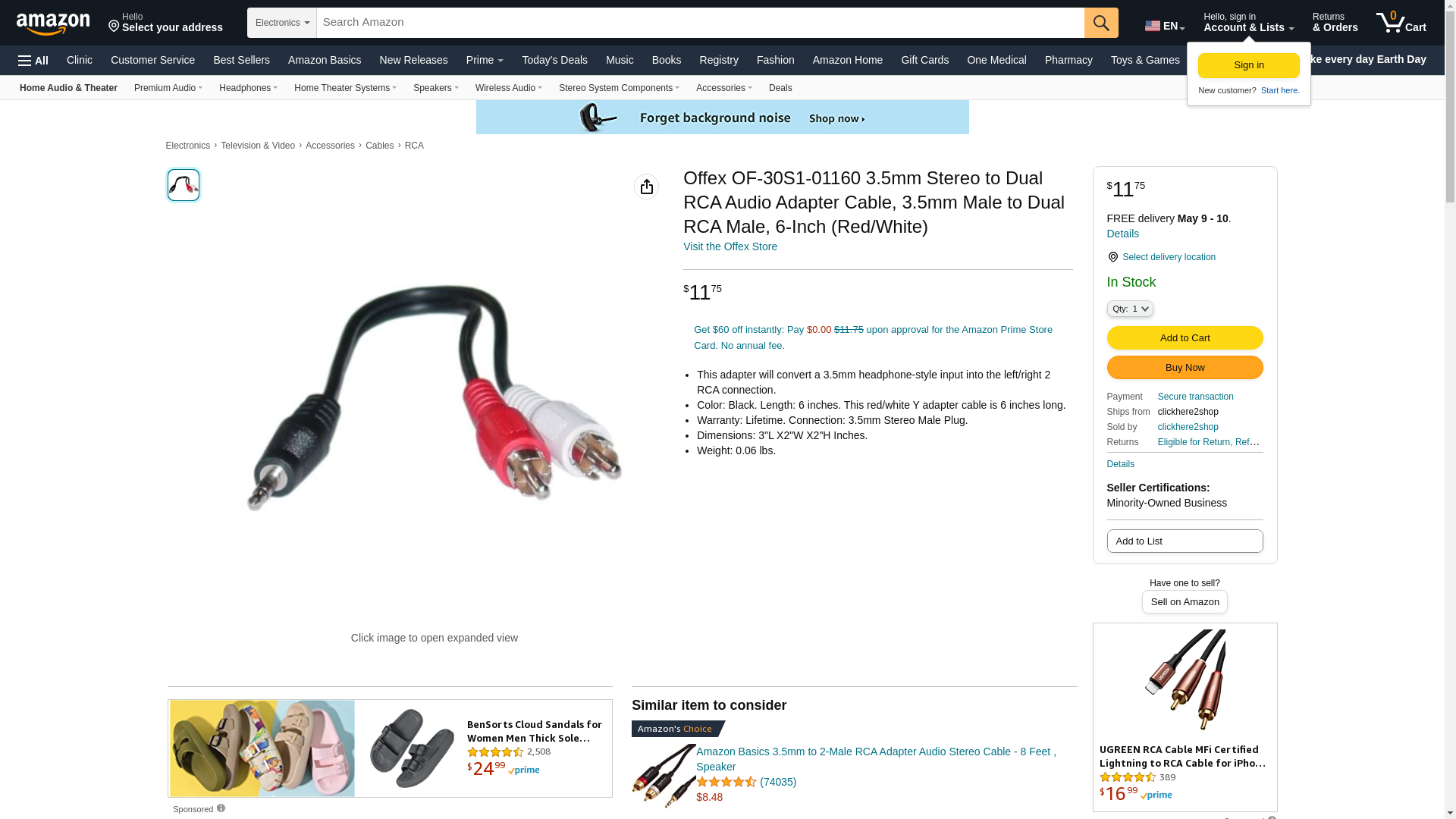 - Color: Black. Length: 6 inches. This red/white Y adapter cable is 6 inches long.