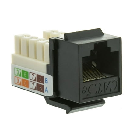 <ul> <li>Cat5e Jack Black Keystone Insert, RJ45 Female to 110 Punch Down.</li> <li>Connection: CAT5E Female Port. Connection: 110 Punch Down.</li> <li>Color: Black.</li> <li>Warranty: Lifetime.</li> <li>Weight: 0.02 lbs.</li> </ul>