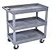 - Includes three 2.5" deep tub shelves. Ergonomic push handle molded into top shelf. Maximum weight capacity of 500 lbs (evenly distributed).