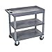 | Feature | Ergonomic push handle molded into top shelf. 5" full swivel casters, two with locking brake. Color: Gray. |