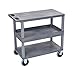 - This cart has two flat shelves and one tub shelf that are 18"D x 32"W. Easy assembly. Color: Gray.