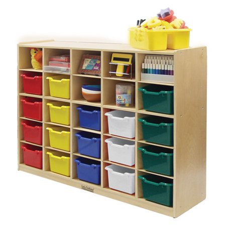 <br /> <br /> <b>Features : </b> <br /> <li> Product Dimensions 48.0L x 13.0W x 36.0H. Includes 25 assorted Primary cubbie bins.</li> <li>Interior Cubbie Dimensions approximately 12-18D x 9-14W x 6-14H. Bins: 8W x 11.75L x 5.25H.</li> <li>Easy assembly, instructions and tools included. Optional heavy-duty casters included for easy mobility.</li> <li>Safety Tested to be Non-Toxic - CPSIA compliant. Intended for indoor use only.</li> <li>Quality Satisfaction Guaranteed.</li>
