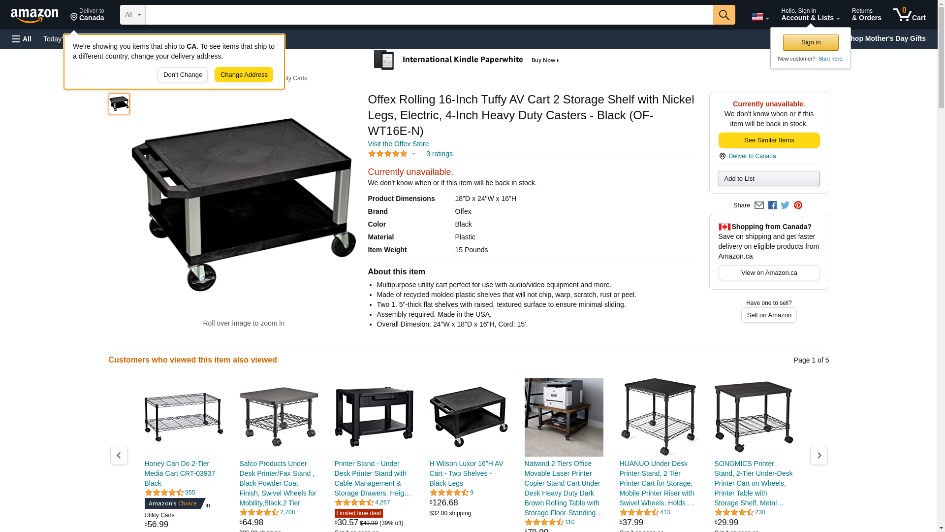 Offex Rolling 16-Inch Tuffy AV Cart 2 Storage Shelf with Nickel Legs, Electric, 4-Inch Heavy Duty Casters - Black (OF...
