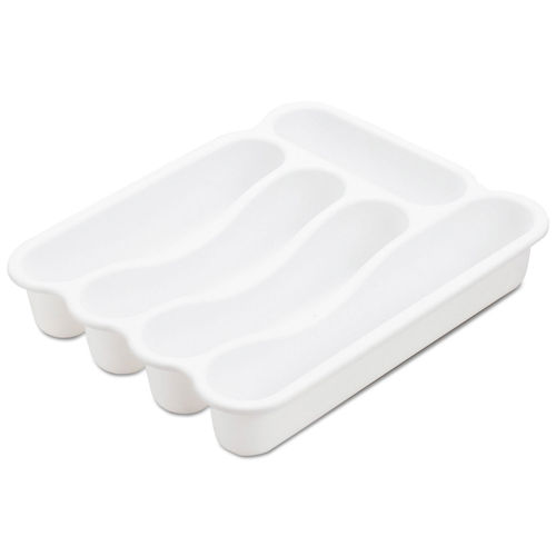 Office Settings 5CCTWH 5 Compartment Cutlery Tray, 2" Height, 11" Width, 13-1/2" Length, Plastic, White