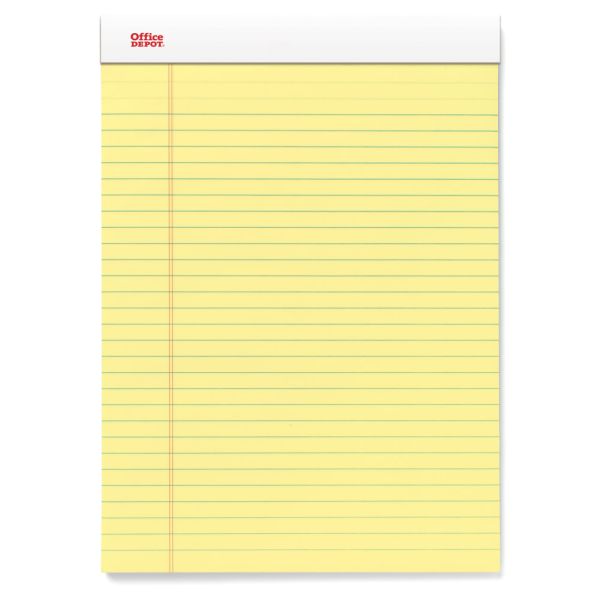 Office Depot(R) Perforated Writing Pads, 8 1/2" x 11 3/4", Legal Ruled, Canary, Pack Of 12