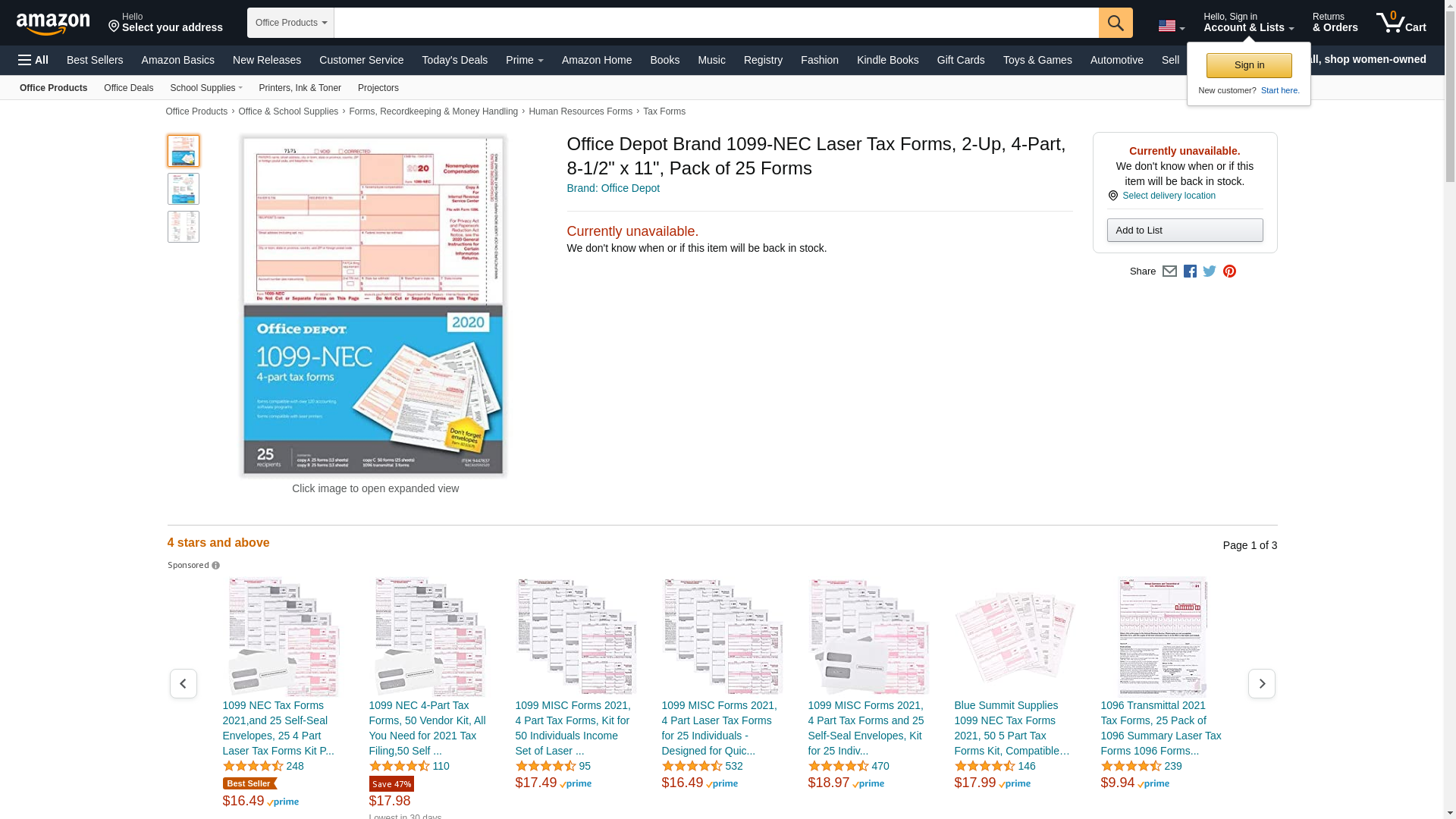 Office Depot Brand 1099-NEC Laser Tax Forms, 2-Up, 4-Part, 8-1/2" x 11", Pack of 25 Forms