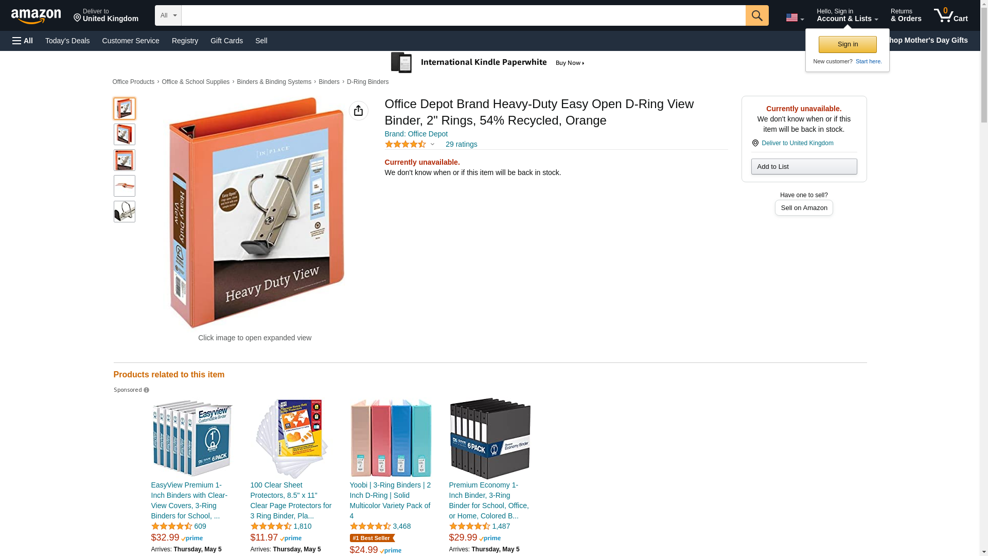 Office Depot Brand Heavy-Duty Easy Open D-Ring View Binder, 2" Rings, 54% Recycled, Orange