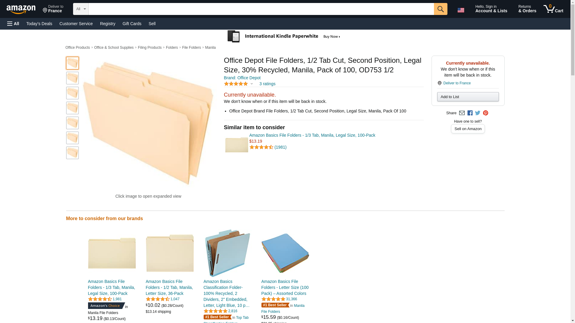 Office Depot File Folders, 1/2 Tab Cut, Second Position, Legal Size, 30% Recycled, Manila, Pack of 100, OD753 1/2