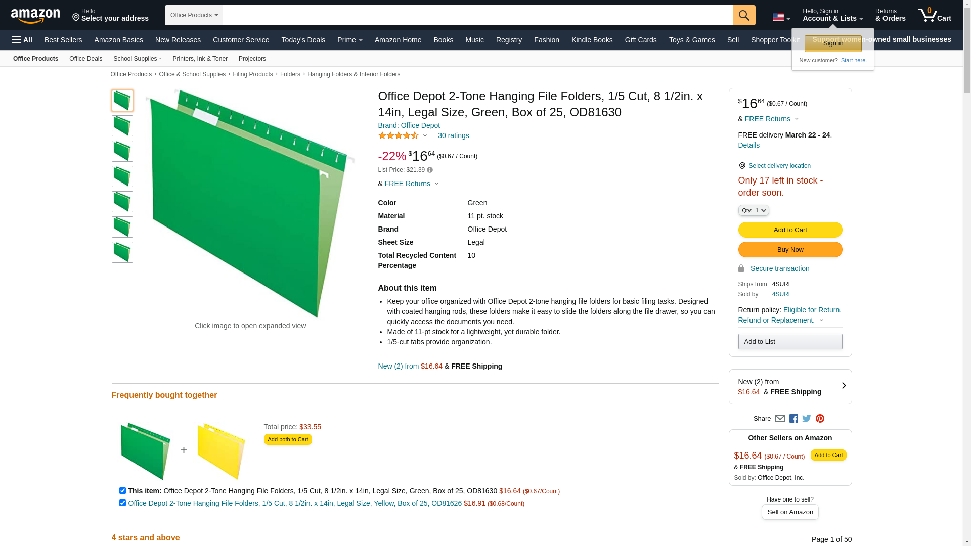Keep your office organized with Office Depot 2-tone hanging file folders for basic filing tasks. Designed with coated hanging rods, these folders make it easy to slide the folders along the file drawer, so you can quickly access the documents you need. Made of 11-pt stock for a lightweight, yet durable folder. 1/5-cut tabs provide organization.