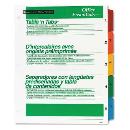 - OFFICEESSENTIALS 11667 Office Essentials Table `N Tabs Dividers, Five Multicolor Tabs, 1-5, Letter, Set