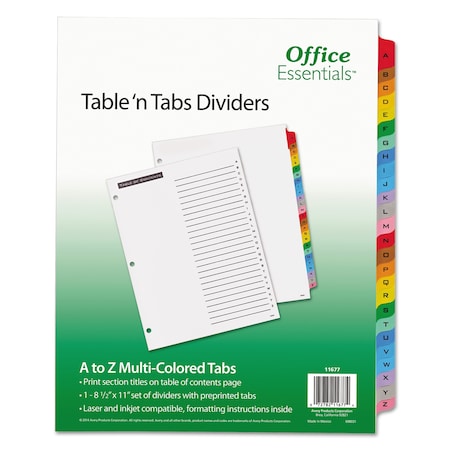 - OFFICEESSENTIALS 11677 Office Essentials Table `N Tabs Dividers, 26-Tab, A-Z, Letter, Assorted, 1 Set