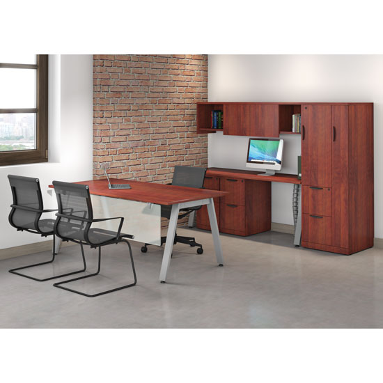 Office Source OS135WH White Typical Variant Desk Suite with Wardrobe Cabinet