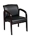 Office Star Visitors Chair with Mahogany Finish Base and Arms, Black Faux Leather