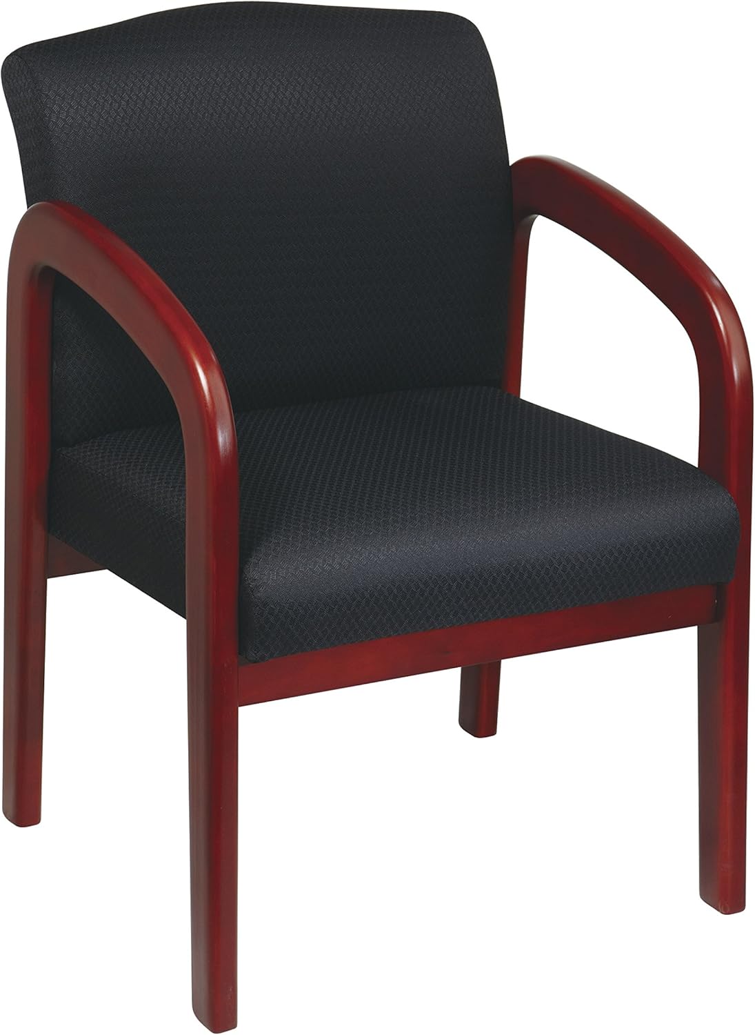 Office Star Padded Fabric Seat and Back Visitors Chair with Cherry Finish Frame, Black Triangle