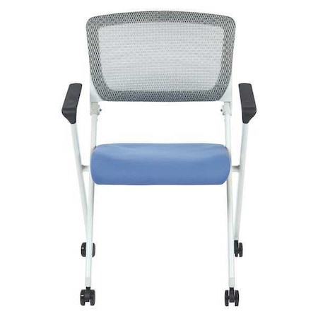 SPACE Seating Folding Chair with Screen Back and Sky Fabric Mesh Seat in White Finish Frame