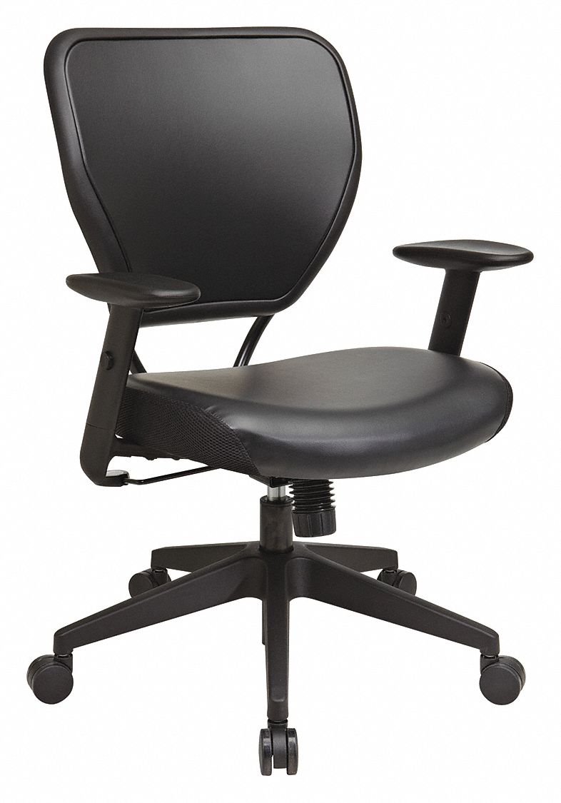 Attractive, easy to clean and comfortable Office Star Products' Space 55 Series Vinyl Manager's Chair is an ideal choice for your office. This chair features black vinyl over an Air Grid back and a padded black vinyl seat. The adjustable lumbar support keeps your back comfy and the adjustable arms and tilt allow you to find the perfect working position. Adjust the seat height from 18 3/4" to 23". The back reclines at a 2-to-1 ratio to the seat angle and allows users to recline while keeping the seat cushion relatively level to the floor. Rolls easily on dual-wheel casters. Office Star Products' Space 55 Series Vinyl Manager's Chair is GREENGUARD certified and meets ANSI/BIFMA standards. Backed by a three-year warranty. Key Features Adjust the seat height from 18 3/4" to 23" Arm height and tilt tension are adjustable Features 2-to-1 synchro tilt Rolls easily on dual carpet casters Vinyl upholstery is easy to wipe clean GREENGUARD certified Meets or exceeds ANSI/BIFMA standards Backed by a three-year warranty Specifications Back Material: Black vinyl over Air Grid mesh Seat Material: Cushioned padding with black vinyl upholstery Frame Finish: Nylon Seat Height: 18 3/4" – 23" adjustable Seat Size: 20 1/2"W x 19 1/2"D Back Size: 20 1/2"W x 18 1/2"H Width: 26 1/2" Depth: 25 1/4" Height: 42"