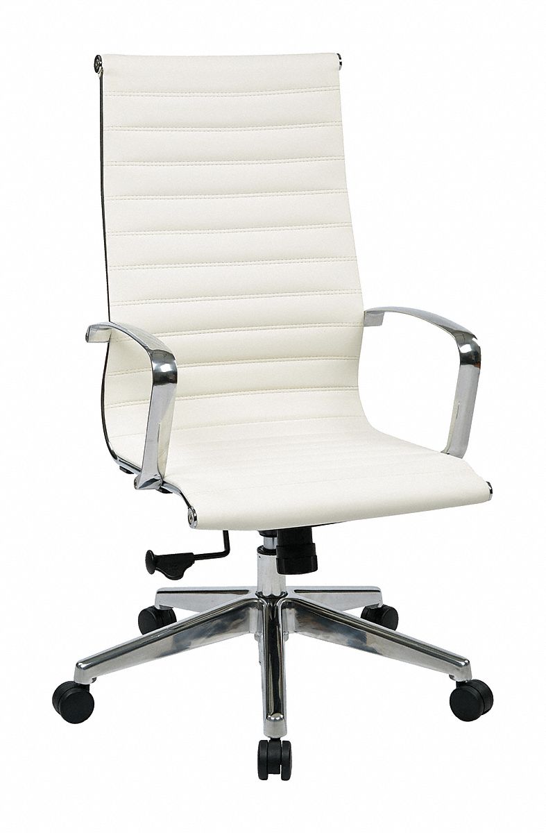 The Office Star 74023 Executive White Eco Leather Conference Chair is a sleek meeting room chair is an eco friendly choice made from recycled leather! Featuring an aluminum steel frame with a white leather seat and back, the Eames style is enhanced by the aluminum armrests and base - comfort is not sacrificed either with the mid pivot knee tilt control that tilts, swivels, and locks in multiple positions! Also featuring built in lumbar support, high back design, and one touch pneumatic seat height adjustment.