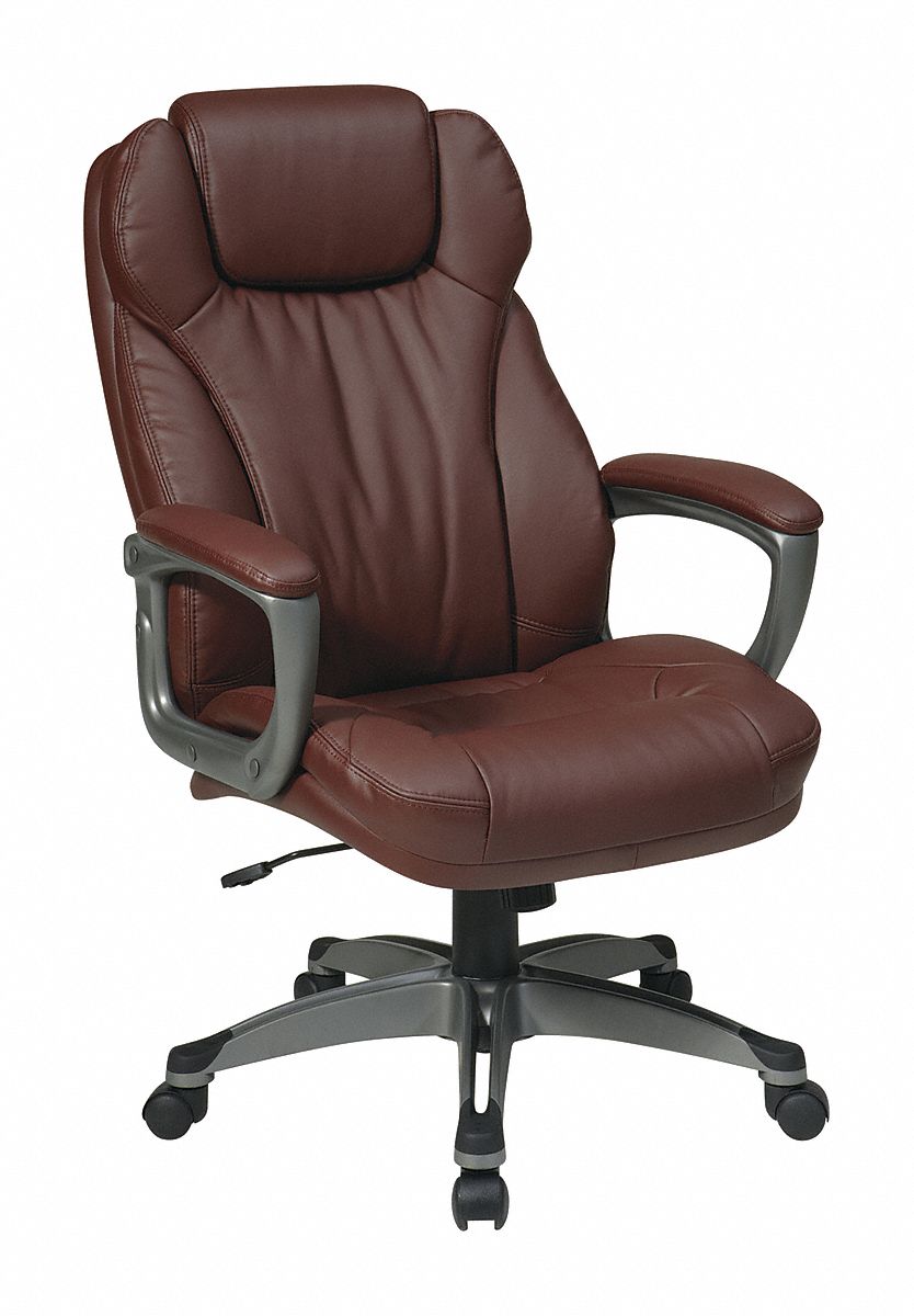 Office Star ECH Series Executive Bonded Leather Chair with Padded Arms, Adjustable Headrest, Wine with Titanium Coated Base