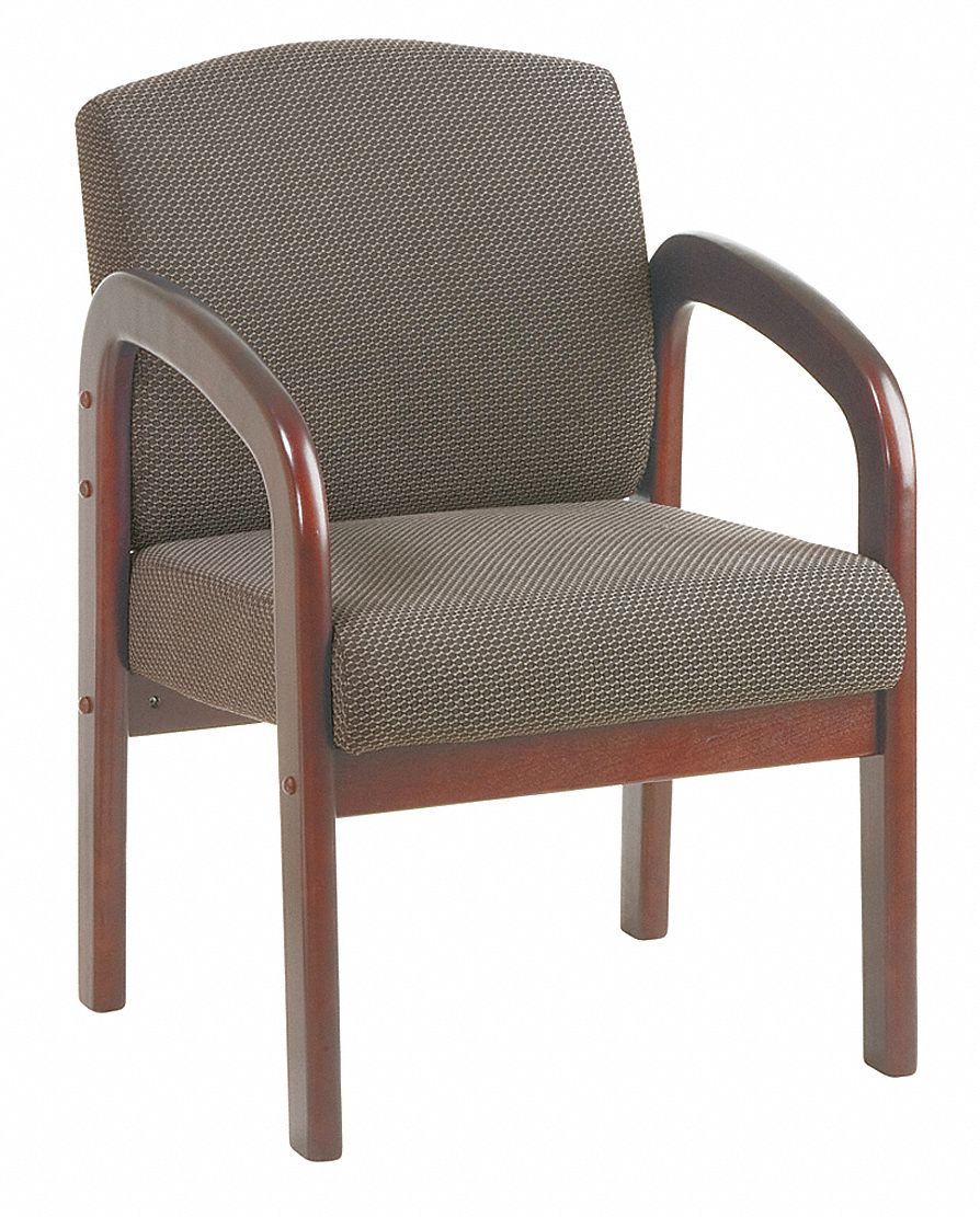 Mahogany Finish Wood Visitors Chair with Grade B Crave Pattern Fabric, Khaki/TaupeThe Intelligent Choice for Any Home or OfficeWork Smart provides an intelligent choice for office seating, multi-purpose folding tables and more. From plush gathered leather executive chairs, to sleek ergonomic selections in tightly fitted easy care fabrics, the Work Smart collection provides quality and value second to none. What’ s more, the Work Smart collection provides one of the industry’ s widest selections of styles and finishes to complement any office setting. Wood Reception Seating - Mahogany Finish Wood Visitors ChairFeatures:• Thick Padded Seat and Back with Built-in Lumbar Support• Mahogany Finish Wood Base & Arms• Fabric Grade Available in Mid Blue (-317), Ruby (-318), Charcoal (-320), Black Triangle (-363), Grade A, Grade B, Grade C, and Grade RSpecs:Seat Size: 21W x 18D x 4TBack Size: 20W x 17.5H x 3TMax. Overall Size: 33.5H x 23W x 25.5DArms Max Inside: 20.25Arms to Floor Min: 26.75Seat Height: 18Cube: 3.8Carton Dimensions: 11 x 22 x 27.25Weight: 27 lbs. Product photo may not exactly match the product offered for sale. Please refer to the product description.