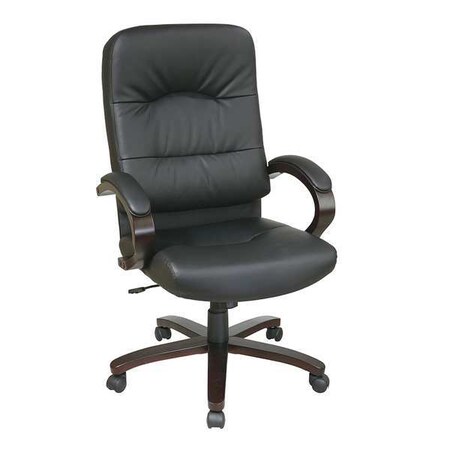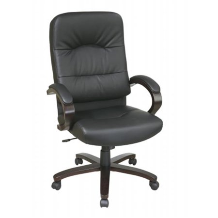 Office Star Products Executive Black Eco Leather High Back Chair with Espresso Finish Wood Base