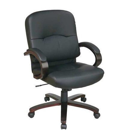 Work Smart Office Star WD5381-EC3 Eco Leather Seat and Mid Back Executive Chair with Padded Loop Arms and Mahogany Accents, 42.25", Black