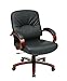 Office Star WD5671-EC3 Executive Mid Back Chair with Leather and Cherry Base and Padded Arms, 42.25", Black