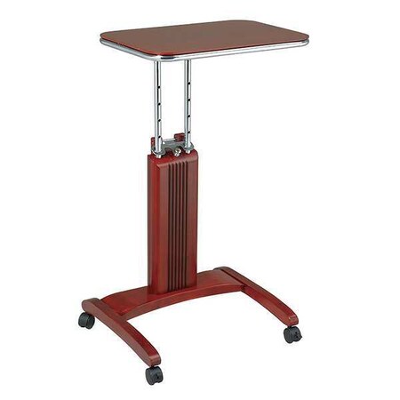 This adjustable height laptop stand from Office Star is available in your choice of Cherry, Mahogany, Maple or Espresso wood finishes. Other features include : *Durable veneer table top *Stand is adjustable up to five different heights *Chrome finish frame and table top accents *Dual wheel casters *Locking casters *Wood finish solids and veneers