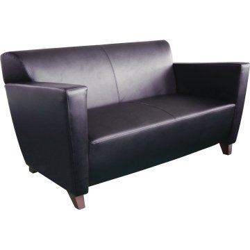 Office Star Modern Leather Loveseat with Cherry Finish Legs, Black