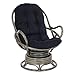 OSP Home Furnishings Tahiti Swivel Rocker Chair with Grey Washed Rattan Frame, Black Fabric Cushion