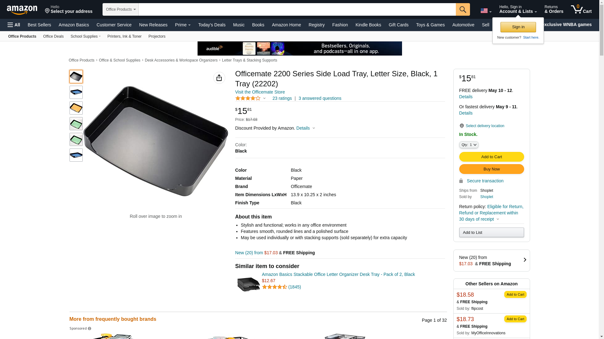 Officemate 2200 Series Side Load Tray, Letter Size, Black, 1 Tray (22202)