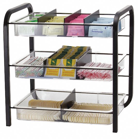 Officemate Giant Condiment and Cutlery Organizer. Contains Three Trays with Six Dividers. Black/Clear (28008)