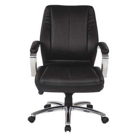 Office Star Bonded Leather Seat and Back, Padded Loop Arms, Chrome Accents Deluxe Mid Back Executive Chair, Black