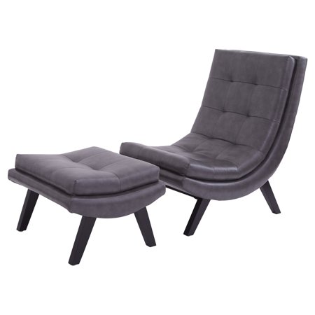 AVE SIX Tustin Faux Leather Lounge Chair and Ottoman Set with Solid Wood Legs, Pewter