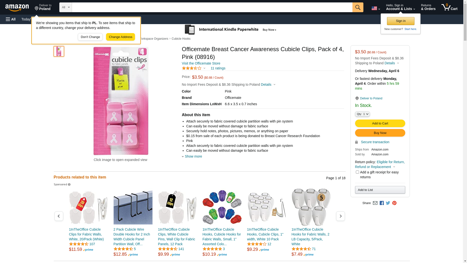 Officemate Breast Cancer Awareness Cubicle Clips, Pack of 4, Pink (08916). Attach securely to fabric covered cubicle ...