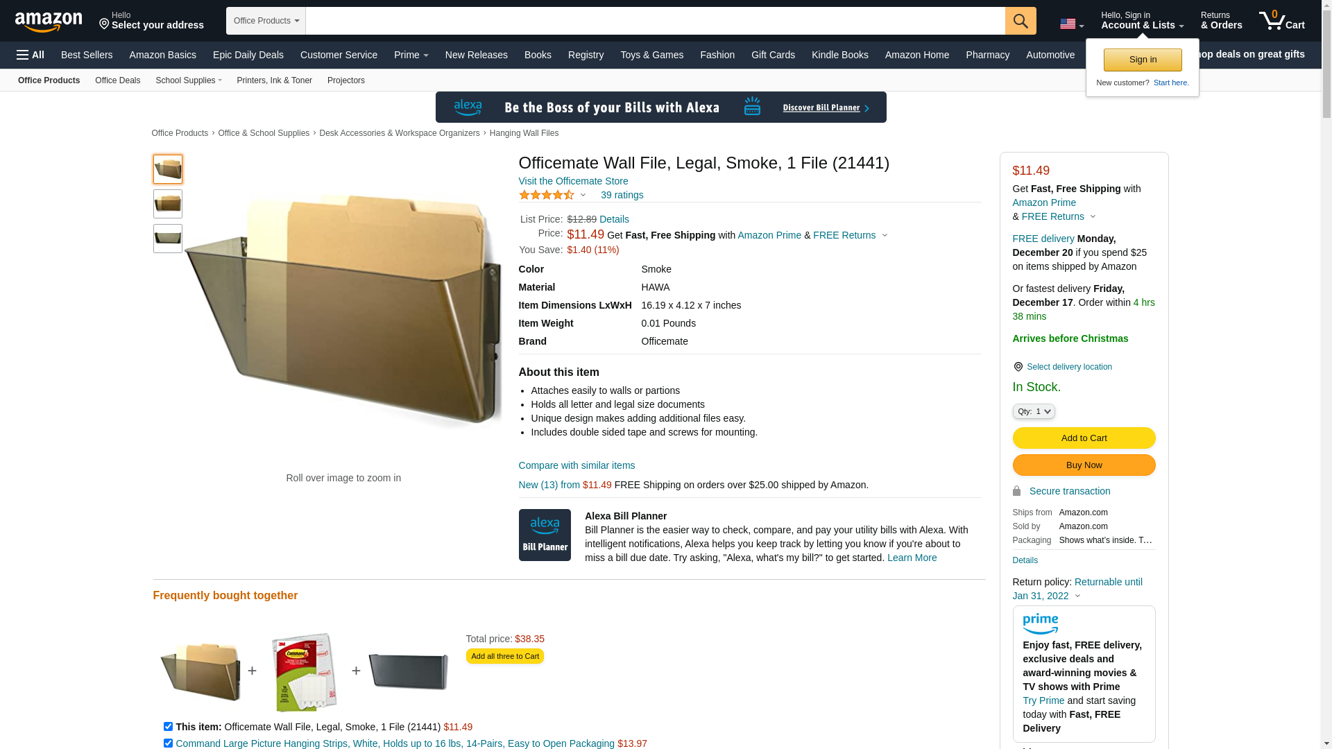 Wall File, Material Plastic, Color Smoke, Height 7 in, Width 16 3/16 in, Depth 4 1/8 in, Number of Compartments 1, Includes Hardware and Tape