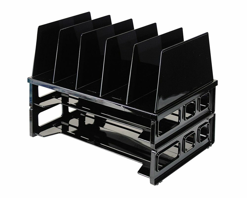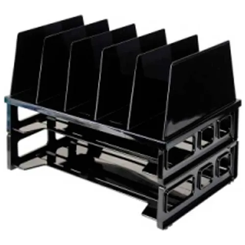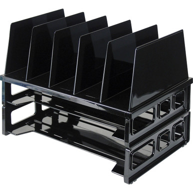 | Feature | Price For: Each Finish: Baked Enamel Material: Plastic Color: Black File Size: Letter Width: 13-1/2" Number of Compartments: (2) Horizontal, (5) Vertical Length: 9" Item: Large Vertical Sorter Height: 10-1/4" Country of Origin (subject to change): United States |