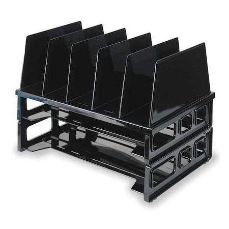 Large Vertical Sorter, File Size Letter, Number of Compartments (2) Horizontal, (5) Vertical, Black, Baked Enamel Finish, Plastic, Length 9 in, Width 13 1/2 in, Height 10 1/4 in