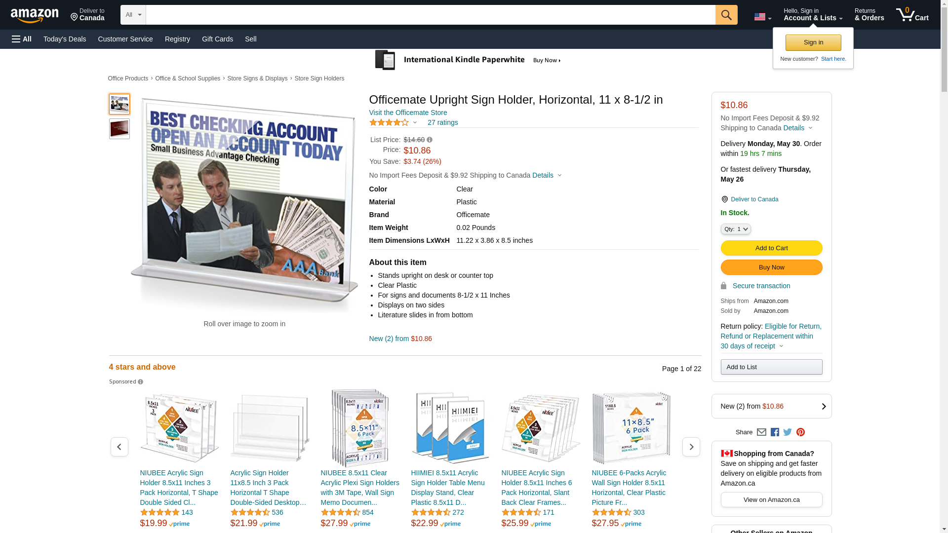 Officemate Upright Horizontal Sign Holder, 11 x 8.5 Inches, Clear, 1 Holder (23006). Stands upright on desk or counte...