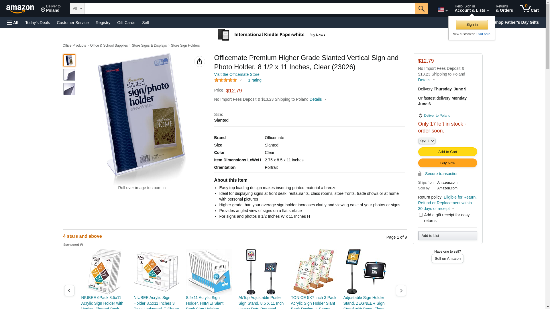 Officemate Premium Higher Grade Slanted Vertical Sign and Photo Holder, 8 1/2 x 11 Inches, Clear (23026)