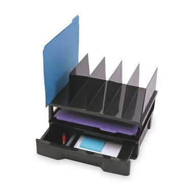 Drawer with Sorter, File Size Letter, Number of Compartments (1) Drawer, (1) Horizontal, (5) Vertical, Black, Baked Enamel Finish, Plastic, Length 9 in, Width 14 in, Height 12 3/4 in