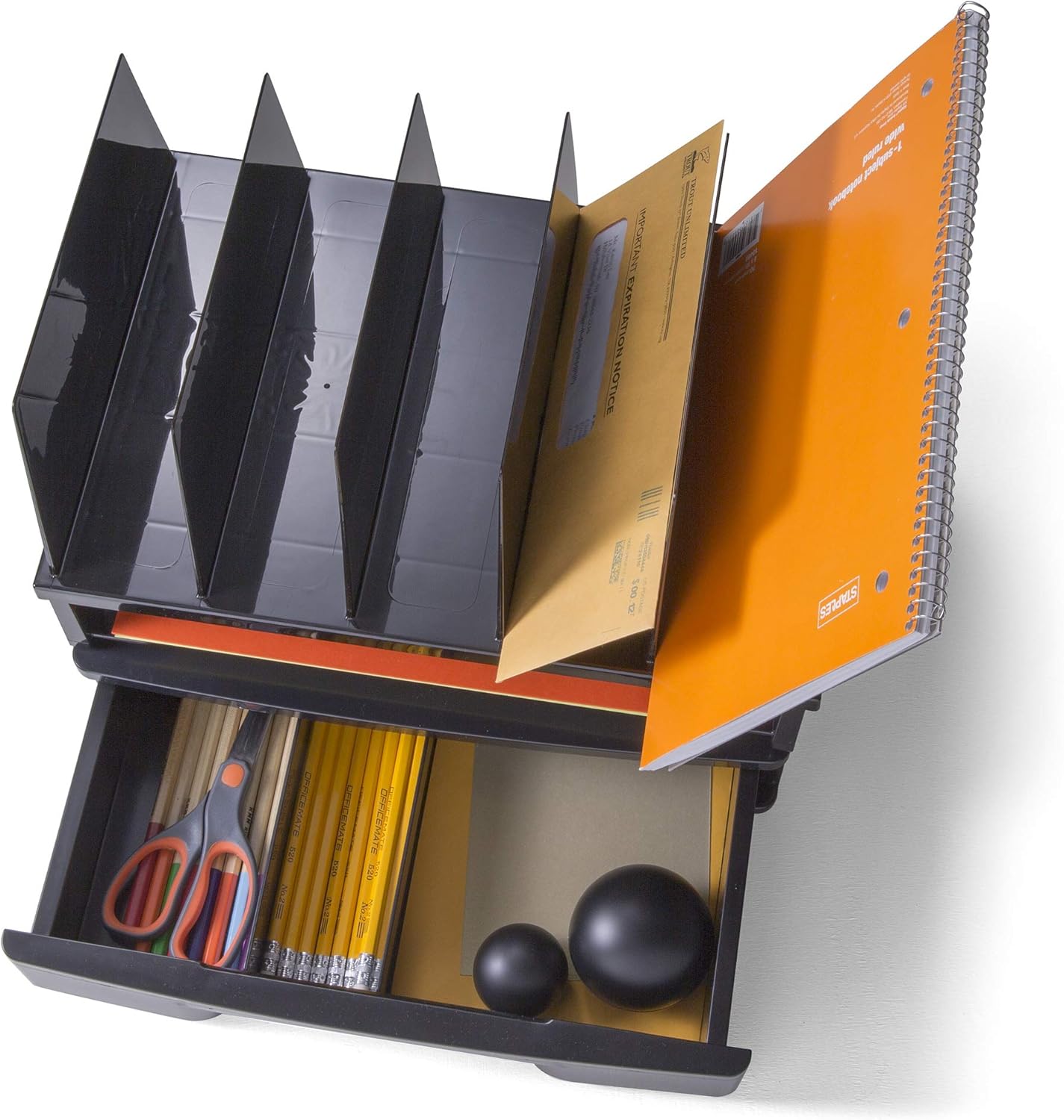Officemate Recycled Drawer with Letter Tray and Vertical Sorter, Black (26095)