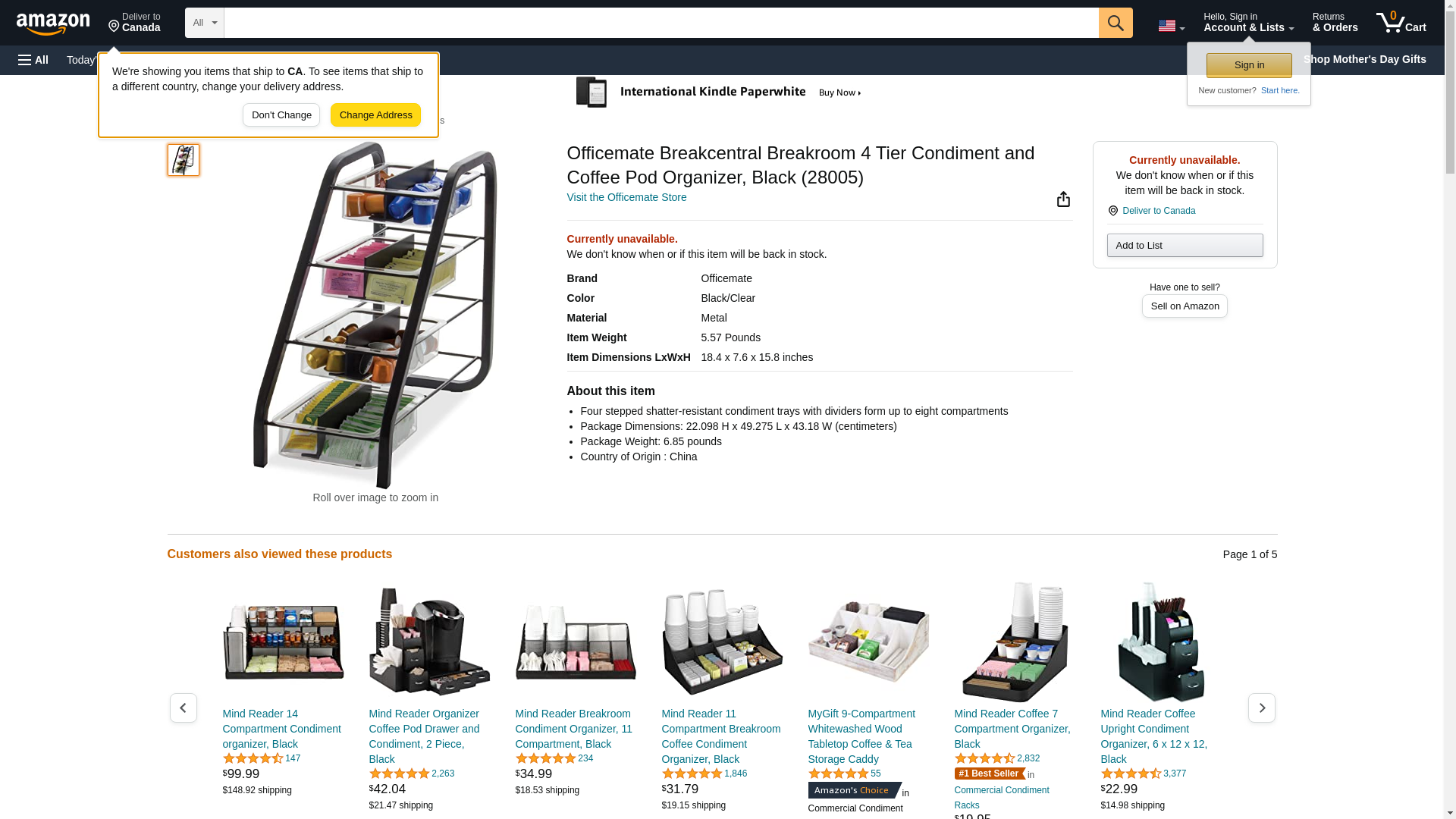 Officemate Breakcentral Breakroom 4 Tier Condiment and Coffee Pod Organizer, Black (28005)
