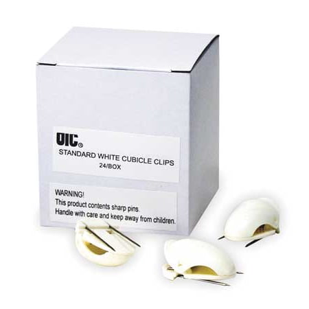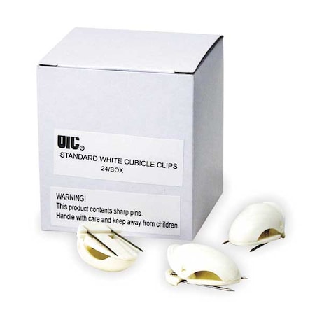 ' Cubicle Wall Panel Clip, Size 1 In.W, Holding Capacity Up to 40 Sheets, Color White, Material Plastic, Package Quantity 24 '