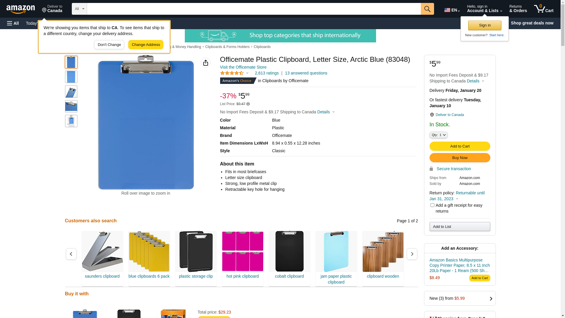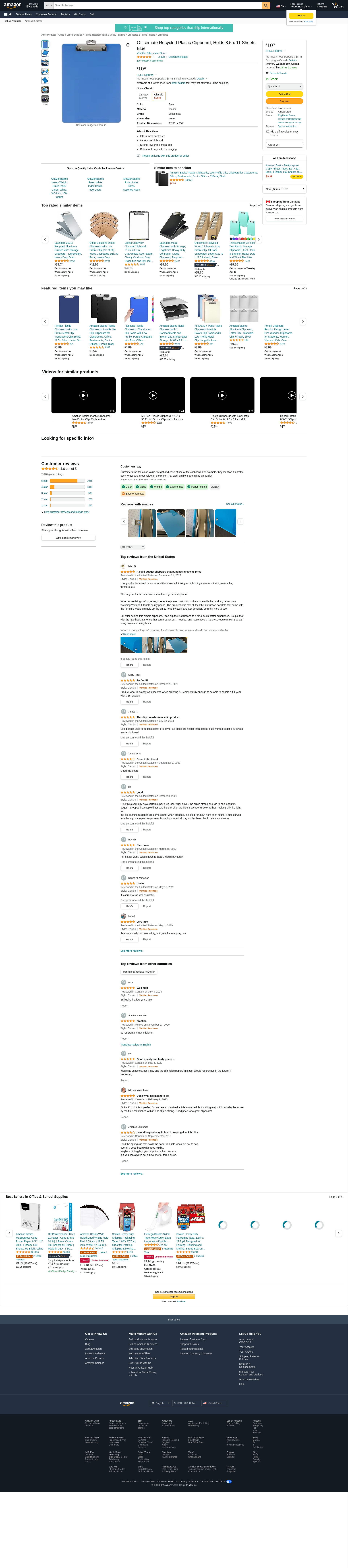 Officemate OIC Plastic Clipboard, Letter Size, Arctic Blue (83048). Fits in most briefcases. Letter size clipboard. S...