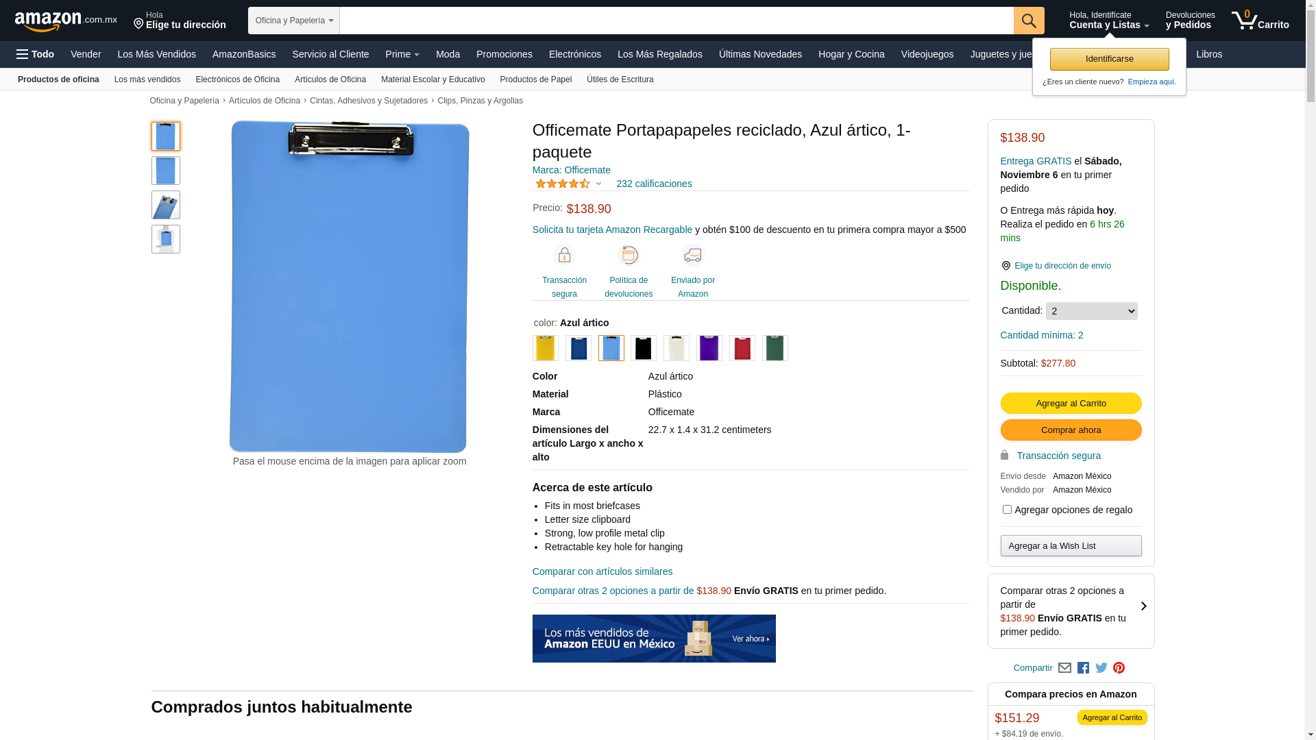 Officemate Recycled Plastic Clipboard, Holds 8.5 x 11 Sheets, Blue