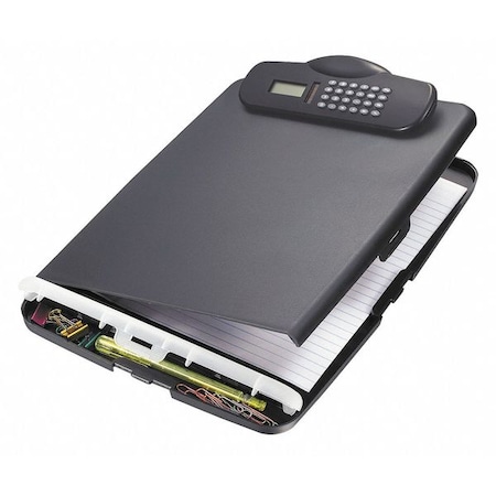 - Slim clipboard storage box with calculator is designed to fit into most briefcases