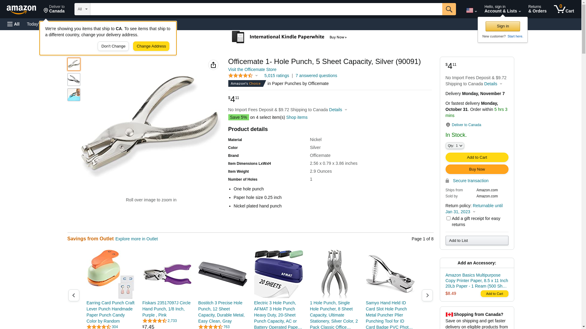 Officemate 1- Hole Punch, 5 Sheet Capacity, Silver (90091): Maxedbuy.com