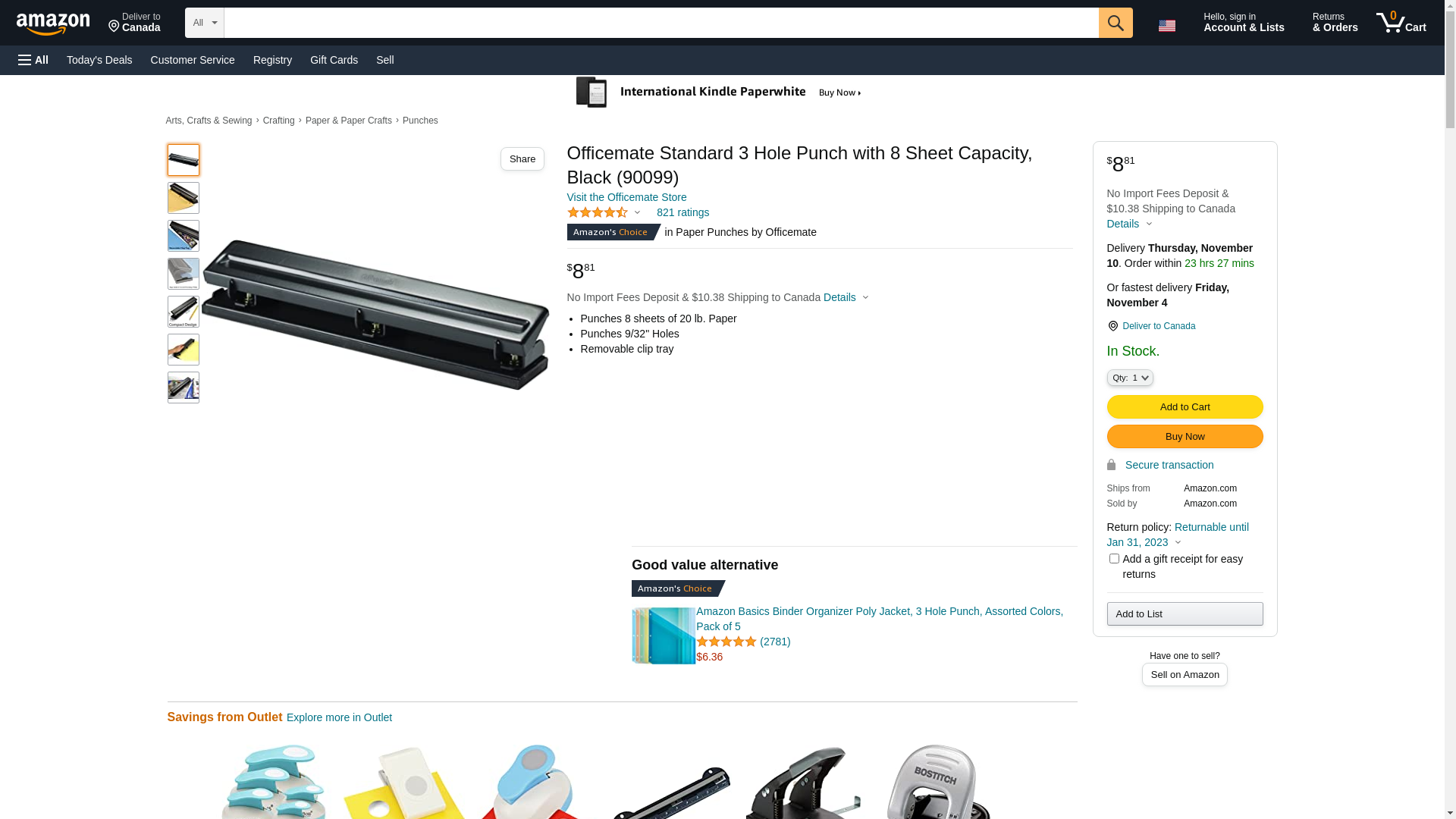 Officemate Standard 3 Hole Punch with 8 Sheet Capacity, Black (90099): Maxedbuy.com