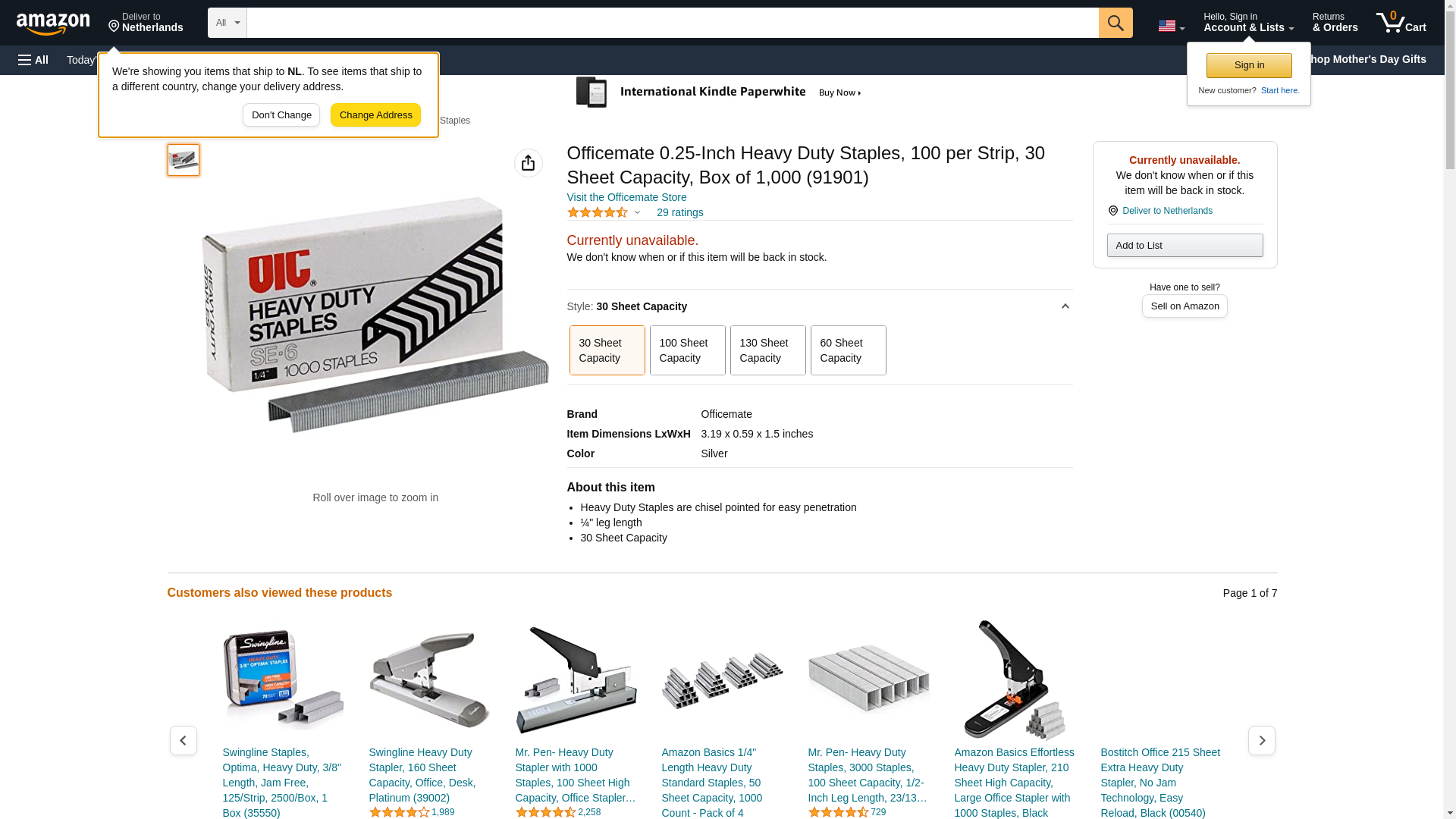 Officemate 0.25-Inch Heavy Duty Staples, 100 per Strip, 30 Sheet Capacity, Box of 1,000 (91901)